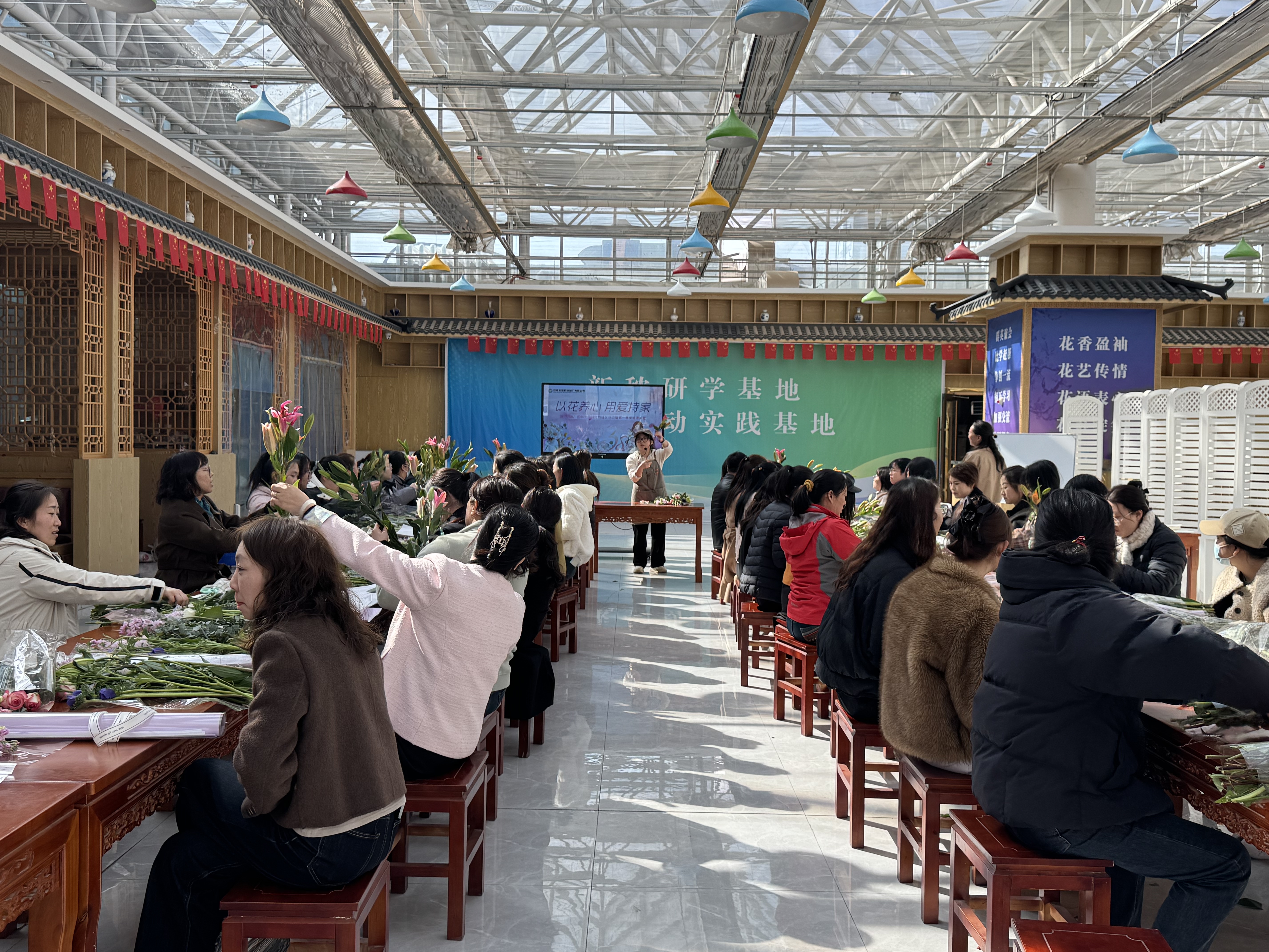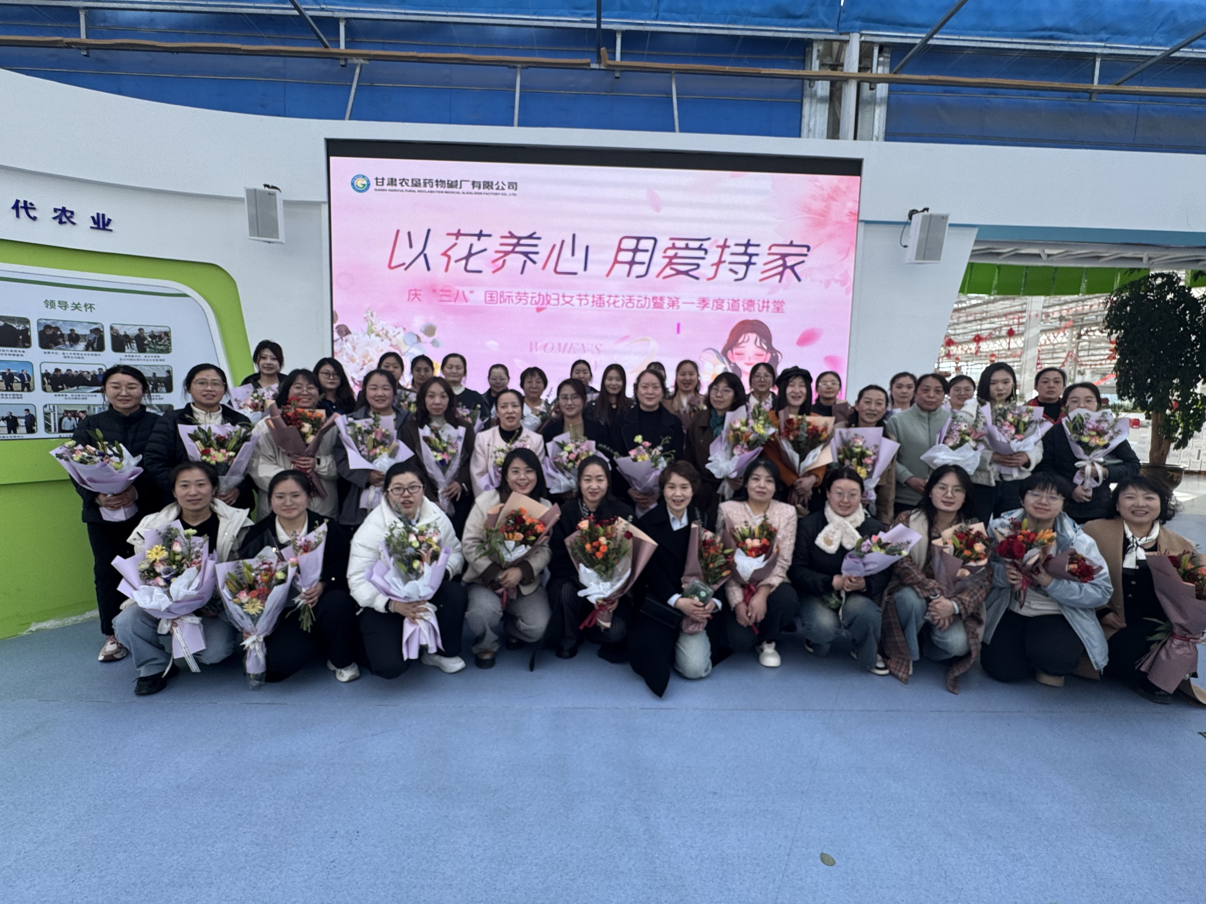 为庆祝“三八”国际劳动妇女节115周年,丰富女性精神文化生活,甘肃农垦药物碱厂有限公司开展普法讲座——守护妇女权益暨道德讲堂、“以花养心 用爱持家”为主题的插花系列活动。