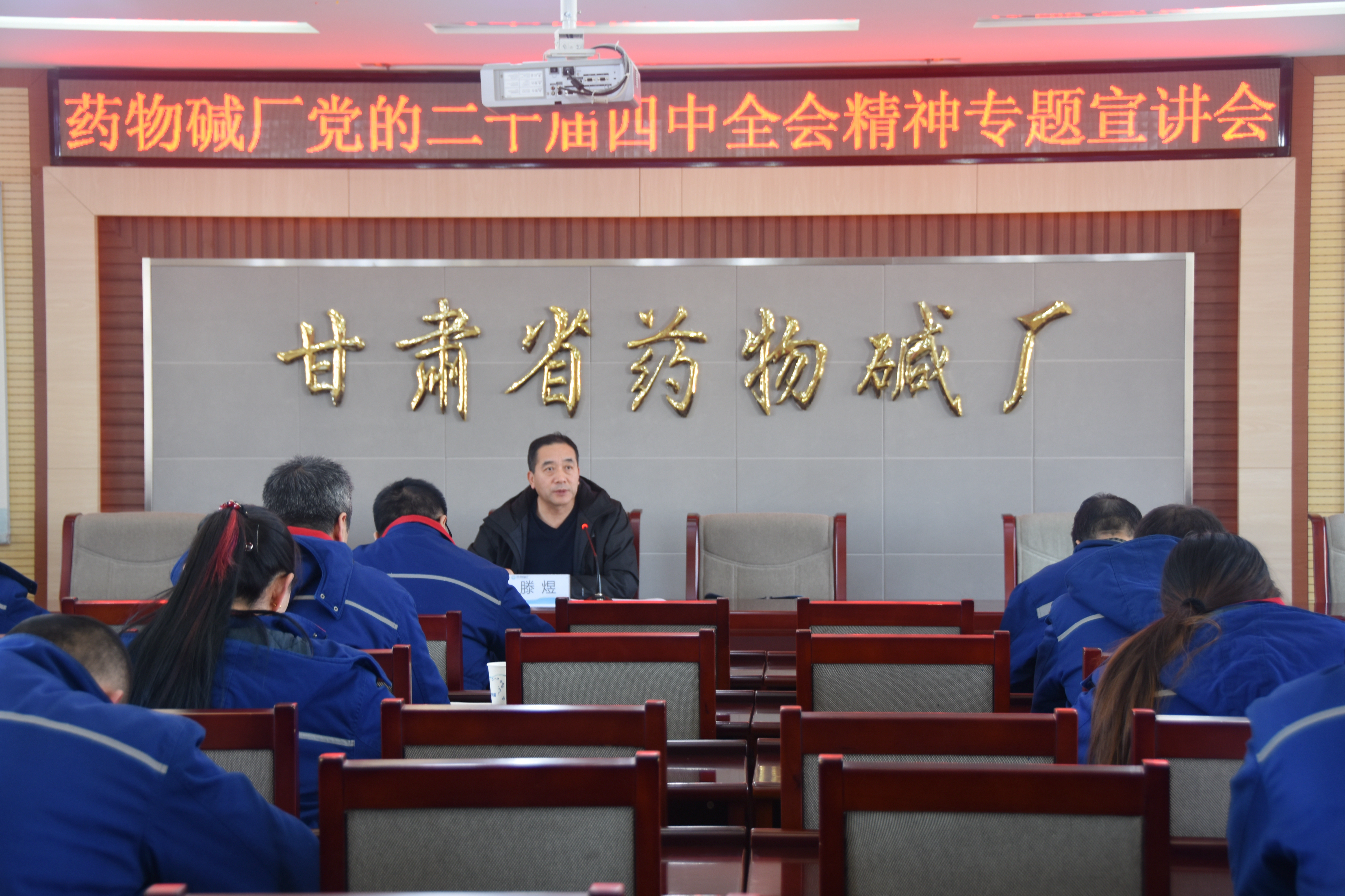 12月24日,药物碱厂党委副书记、总经理滕煜赴武威分公司(普华公司),专题宣讲党的二十届四中全会精神。分公司全体不当班干部职工参加会议。